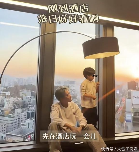 进了房间正好赶上日落,大窗户外面的风景别提多棒了。苏醒坐在窗台上拉着儿子,父子俩在夕阳下的画面,温馨得让人心里暖暖的。