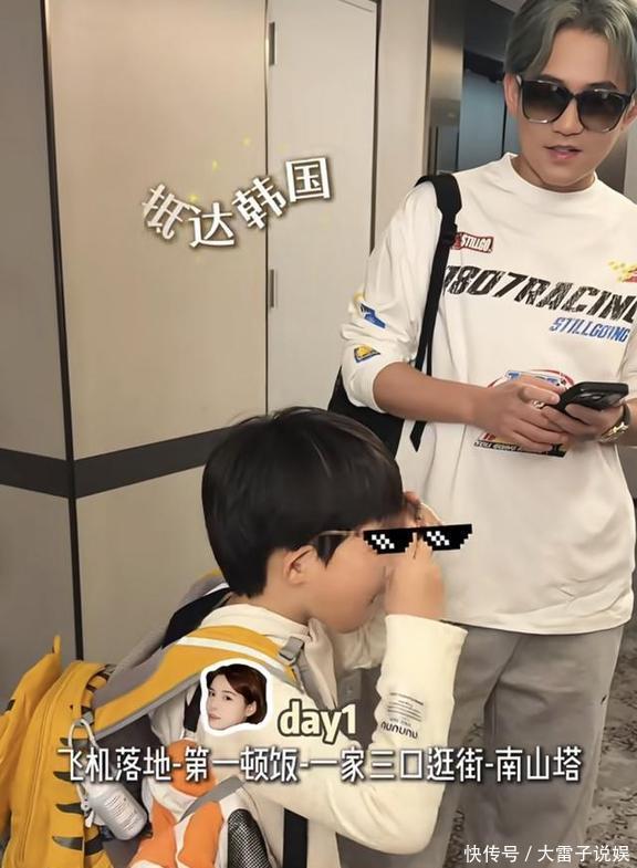 小儿子没跟着,倒也没扫了苏醒和老婆的兴,带一个娃出门反而轻松不少。廖语辰在电梯里还自拍呢,身上那件LV大衣听说四万多,脸上皮肤嫩得很,哪像生过两个娃的妈妈!苏醒呢,走到哪儿唱到哪儿,5岁大儿子靠在行李箱上,懒洋洋的样子还挺会享受。